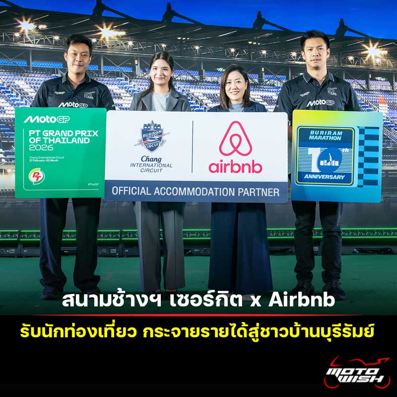 สนามช้างฯ ผนึกกำลัง Airbnb ปักหมุดรับนักท่องเที่ยว ‘โมโตจีพี-บุรีรัมย์ มาราธอน’ กระจายรายได้สู่ชาวบ้าน Posted on 19/01/2026 by Rider 69 บริษัท บุรีรัมย์ ยูไนเต็ด อินเตอร์เนชั่นแนล เซอร์กิต (BRIC) ผู้บริหาร สนามช้าง อินเตอร์เนชั่นแนล เซอร์กิต ประกาศความร่วมมือกับ Airbnb แพลตฟอร์มที่พักระดับโลก...Read More