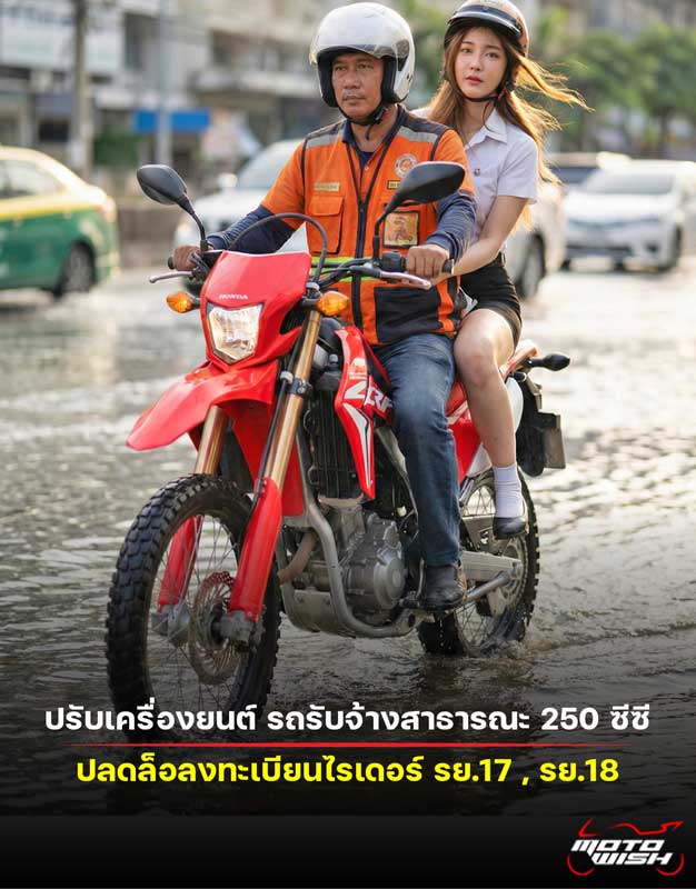 เตรียมปรับขนาดเครื่องยนต์รถจักรยานยนต์สาธารณะเป็น 250 ซีซี ปลดล็อกลงทะเบียนไรเดอร์ Posted on 16/01/2026 by Rider 69 จากความร่วมมือดังกล่าวล่าสุด อธิบดีกรมการขนส่งทางบก (ขบ.) ได้พิจารณาดำเนินการแก้ไขเพิ่มเติมกฎกระทรวง เรื่องขนาดความจุกระบอกสูบสำหรับรถจักรยานยนต์สาธารณะจากเดิม...Read More