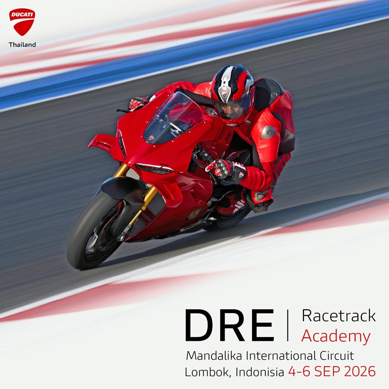 Escape to Mandalika : The Ultimate Dream Journey for Speed Enthusiasts Transform your September holiday into a world-class experience. Ducati Thailand proudly invites you to the Pertamina Mandalika International Circuit—one of the world’s most stunning MotoGP tracks—to elevate your riding skills to the next level with DRE Holidays 2026.