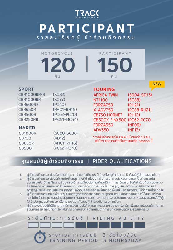 กลับมาอีกครั้งกับกิจกรรม Honda Track Xperience 2026 สนามที่ 2 ให้คุณได้มาปลดล็อคความเร็วกับ Honda Bigbike ไม่ว่าจะรถ Sport หรือรถ Touring คู่ใจให้ก้าวข้ามขีดจำกัดความเร็ว ในสนามแข่งระดับ MotoGP ที่สนามช้าง อินเตอร์เนชั่นแนล เซอร์กิต วันที่ 15-16 พฤษภาคม 2026 นี้