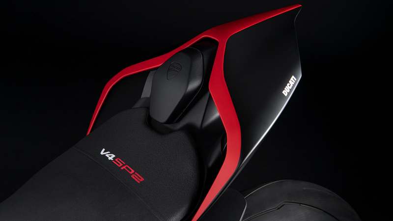 ความสวยงามของ Panigale V2 SP2 โดดเด่นด้วยลวดลายที่ถอดออกมาจากรถแข่งโมโตจีพีของดูคาติในการทดสอบวินเทอร์เทสฤดูกาล 2022 ที่ผ่านมา แฟริ่งสีดำด้าน ตัดกับสีแดงสด หลอมรวมกับผิวคาร์บอนไฟเบอร์บริเวณล้อและปีกวิงเล็ทได้อย่างลงตัว ไม่เพียงแค่นั้นยังเตะตาด้วยความเงาวาวของถังน้ำมัน และมีเลขสลักเอาไว้บริเวณแฮนด์อีกด้วย