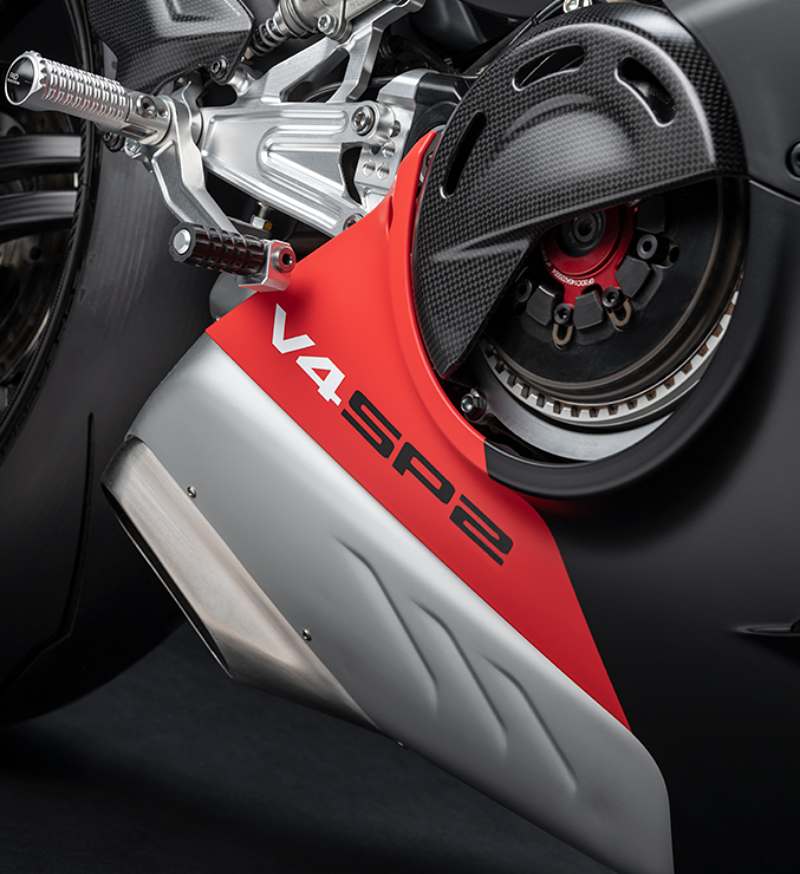 Ducati Panigale V4 SP2 มาพร้อมกับเครื่องยนต์ Desmosedici Stradale ขนาด 1,103 ซีซี V4 ที่ได้รับการถ่ายทอดมาจากรถแข่งโมโตจีพี พละกำลัง 215.5 แรงม้าที่ 13,000 รอบต่อนาที และแรงบิดสูงสุด 123.6 นิวตันเมตรที่ 9,500 รอบต่อนาที เกียร์ 6 สปีด Ducati Quick Shift (DQS) EVO 2 ขึ้นและลง คลัตซ์แห้ง STM-EVO SBK