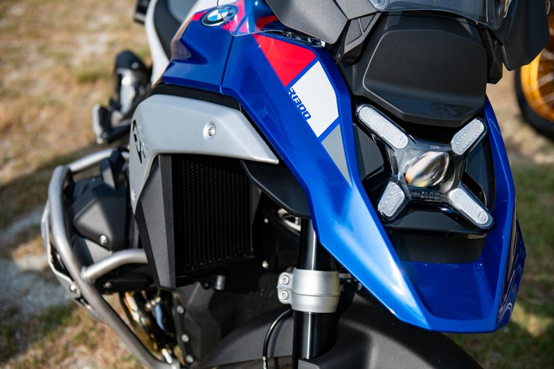 บีเอ็มดับเบิลยู R 1300 GS มาพร้อมไฟหน้าแบบ Full-LED ขนาดกะทัดรัด พร้อมไฟรูปแบบใหม่ที่ดูแตกต่าง ออกแบบให้ดูทันสมัยโดดเด่นตามมาตรฐาน ด้วยไฟ LED สองดวงสำหรับไฟต่ำและสูง นอกจากนี้ ยังมีไฟ LED เพิ่มเติมอีกสี่ดวงสำหรับใช้เป็นไฟส่องสว่างเวลากลางวันและไฟส่องสว่างด้านข้าง ช่วยมอบทัศนวิสัยที่เหนือชั้นกว่าที่เคยในทุกการขับขี่ ฟีเจอร์ Headlight Pro ยังช่วยปรับลำแสงจากไฟหน้า LED ตามการเข้าโค้ง เพื่อการขับขี่อย่างมั่นใจ ไฟเลี้ยวแบบ LED ที่ได้รับการออกแบบใหม่ ติดตั้งที่บริเวณแฮนด์การ์ดพร้อมฟังก์ชันครบครัน มอบความสมบูรณ์แบบให้กับระบบไฟส่องสว่าง