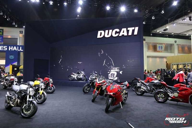 เป็นอีกค่ายที่หลายคนติดตาม เนื่องจากเมื่อปลายปีที่ผ่านมา บริษัทแม่ Ducati ที่อิตาลี่ ประกาศเปิดตัวรถใหม่ถึง 9 รุ่น และในวันนี้เป็นโอกาสดีที่เราจะได้เห็นรถรุ่นใหม่ และรถรุ่นพิเศษที่มีจำนวนจำกัด ในงาน Motor Show 2016