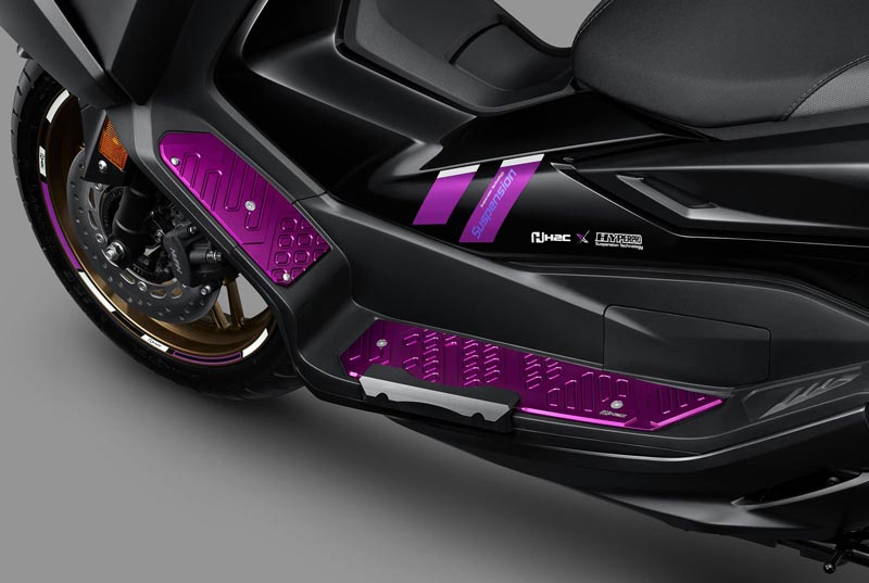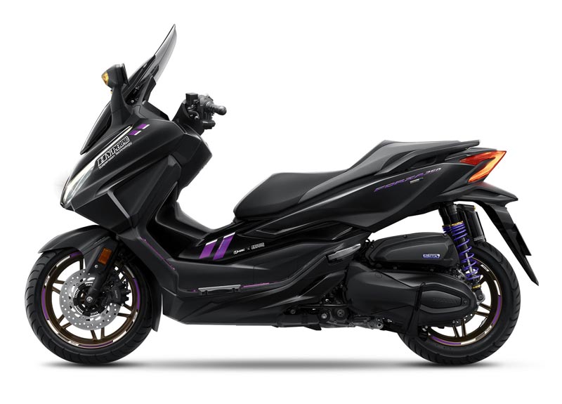 ไทยฮอนด้า ร่วมกับแบรนด์ระดับโลก HYPERPRO เปิดตัว “NEW FORZA 350 HYPERPRO SPECIAL EDITION” มาพร้อมกับคอนเซปต์ “DARK GRAVITY แรงดึงดูด ไม่ว่าใครต้องสยบ” ดีไซน์เข้มขั้นสุดล้ำด้วยลายเส้นสีม่วงที่เป็นสีเอกลักษณ์ของ HYPERPRO รวมถึงชุดกราฟฟิกที่ออกแบบมาให้ลงตัวตัดกับรถสีดำ เข้าชุดกับแผ่นวางเท้าสีม่วง และวงล้อสีม่วง