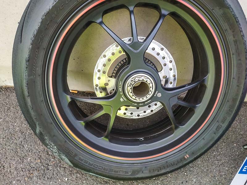 จากรูปภาพเจ้าของรถดูคาติคันดังกล่าว จะเห็นได้ว่าแกนเพลาล้อหลัง ที่ใช้ยึดกับสวิงอาร์ม ขาดติดกับล้อหลังออกมาอย่างที่เห็น