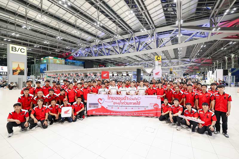 ไทยฮอนด้า ร่วมกับร้านผู้จำหน่ายรถจักรยานยนต์ฮอนด้าทั่วประเทศ เดินหน้าเช่วยเหลือผู้ประสบภัยภาคใต้ภายใต้โครงการ “ไทยฮอนด้า ร่วมใจสู้ภัยน้ำท่วมภาคใต้” โดยส่งทีมช่างมืออาชีพ และอาสาสมัครช่างศูนย์บริการฮอนด้าจากทั่วประเทศกว่า 200 คน พร้อมอุปกรณ์ช่างครบชุด บินตรงลงพื้นที่หาดใหญ่เพื่อให้บริการตรวจเช็กและซ่อมรถที่ได้รับผลกระทบจากน้ำท่วมอย่างเร่งด่วน หลังมีประชาชนนำรถเข้ารับบริการมากกว่า 1,000 คัน ภายในวันแรก