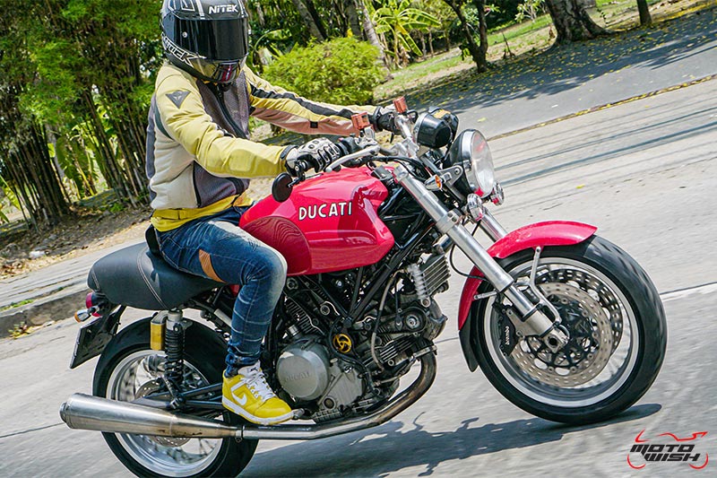ลองกระแทกคันเร่งแรงๆอยากรู้ว่ากริปของเนื้อยางหลังวอร์มหน้ายางแล้วจะเกาะถนนได้สักแค่ไหน ถึงกับร้องว้าวๆๆกันเลยทีเดียว ทันทีที่กดคันเร่งล้อหน้าเทคลอยยาวๆ เนื้อยางให้การยึดเกาะได้นิ่งสนิท และเนื่องจากเจ้าดูคาติรุ่น GT1000 นี้ไม่มีระบบ ABS หรือ Traction Control แบบรถสมัยใหม่อะไรทั้งนั้น ฉะนั้นจะได้ความรู้สึกในการขี่แบบเพียวๆ รับรู้ได้ถึงฟิลลิ่งของยางและตัวรถอย่างชัดเจน