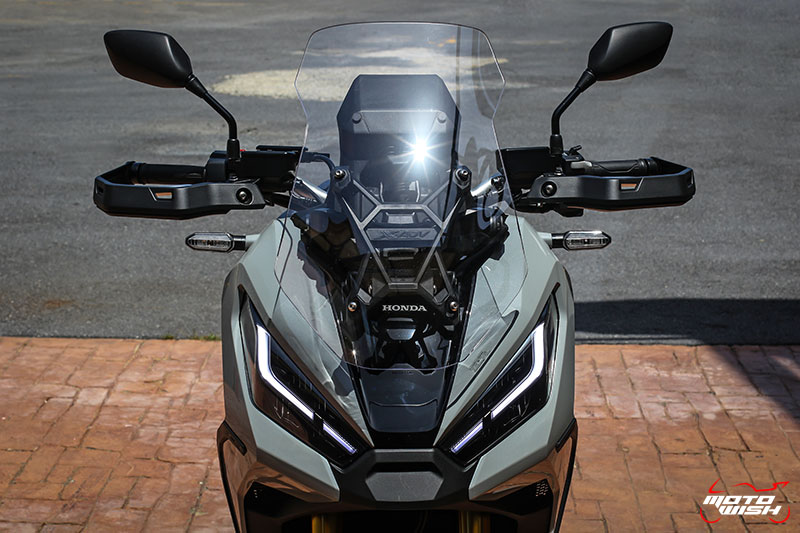 เริ่มตั้งแต่เดินเข้ามาที่ Honda BigWing เห็น All New Honda X-ADV เป็นต้องสะดุดหยุดมอง ด้วยดีไซน์ที่ได้รับการปรังปรุงให้โฉบเฉี่ยวทันสมัยขึ้น โคมไฟหน้าออกแบบใหม่ทั้งระบบ ไฟหน้าแบบ LED มีเส้นสายของ Daytime Running Light ปรับความสว่างอัตโนมัติตามแสงภายนอก นี่มันฟีลรถยุโรปชัดๆ ส่วนกระจกบังลมหน้าเป็นรูปแบบใหม่ และปรับได้ถึง 5 ระดับ