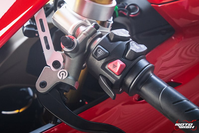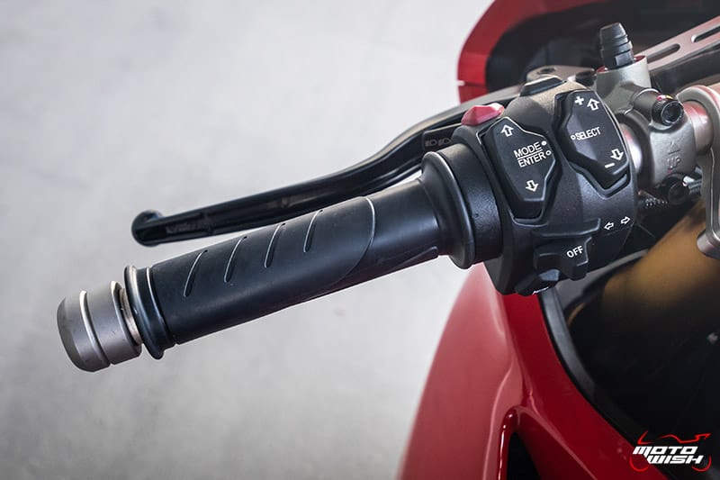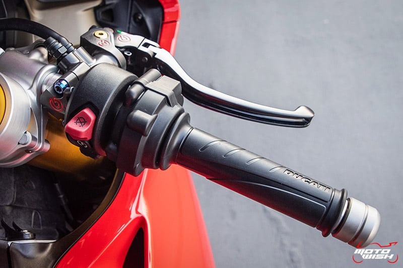 ประกับฝั่งขวามือ มีสวิทช์ Off-Run , ปุ่มสตาร์ท , DPL (Ducati Power Launch) มาพร้อมคันเร่งระบบ Full Ride By Wire ปลอกมือมีโลโก้ Ducati ติดอยู่ด้วย