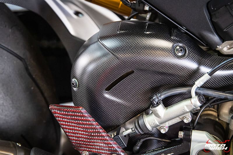 ส่วนรถ Panigale V4S ของทีมงาน (ในรูป) ก็จัดการเปลี่ยนเป็นล้อคาร์บอนยี่ห้อ Rotobox รุ่น BOOST ทำน้ำหนักลดลงจากล้อเดิมไปได้อีกประมาณ 6± กิโลกรัม ล้อคาร์บอนน้ำหนักล้อหน้าอยู่ที่ 2.5± กิโลกรัม ล้อหลังอยู่ที่ 4± กิโลกรัม