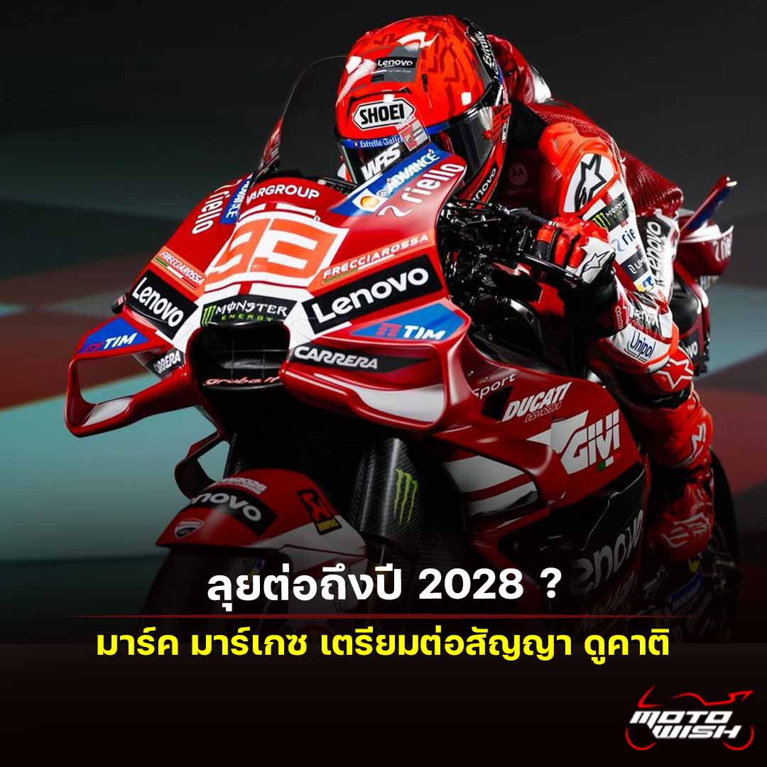 ดูคาติ จ่อเซ็นสัญญา มาร์ค มาร์เกซ ลุยต่อถึงโมโตจีพี 2028 Posted on 25/01/2026 by Ryan ดูคาติ จ่อเซ็นสัญญา มาร์ค มาร์เกซ โดยคาดว่าสัญญาข้างต้นได้มีการเจรจาเสร็จสรรพ และคาดว่าเตรียมเดินหน้าต่อเรื่องค่าจ้างก่อนประกาศสัญญาอย่างเป็นทางการเร็วๆนี้...Read More
